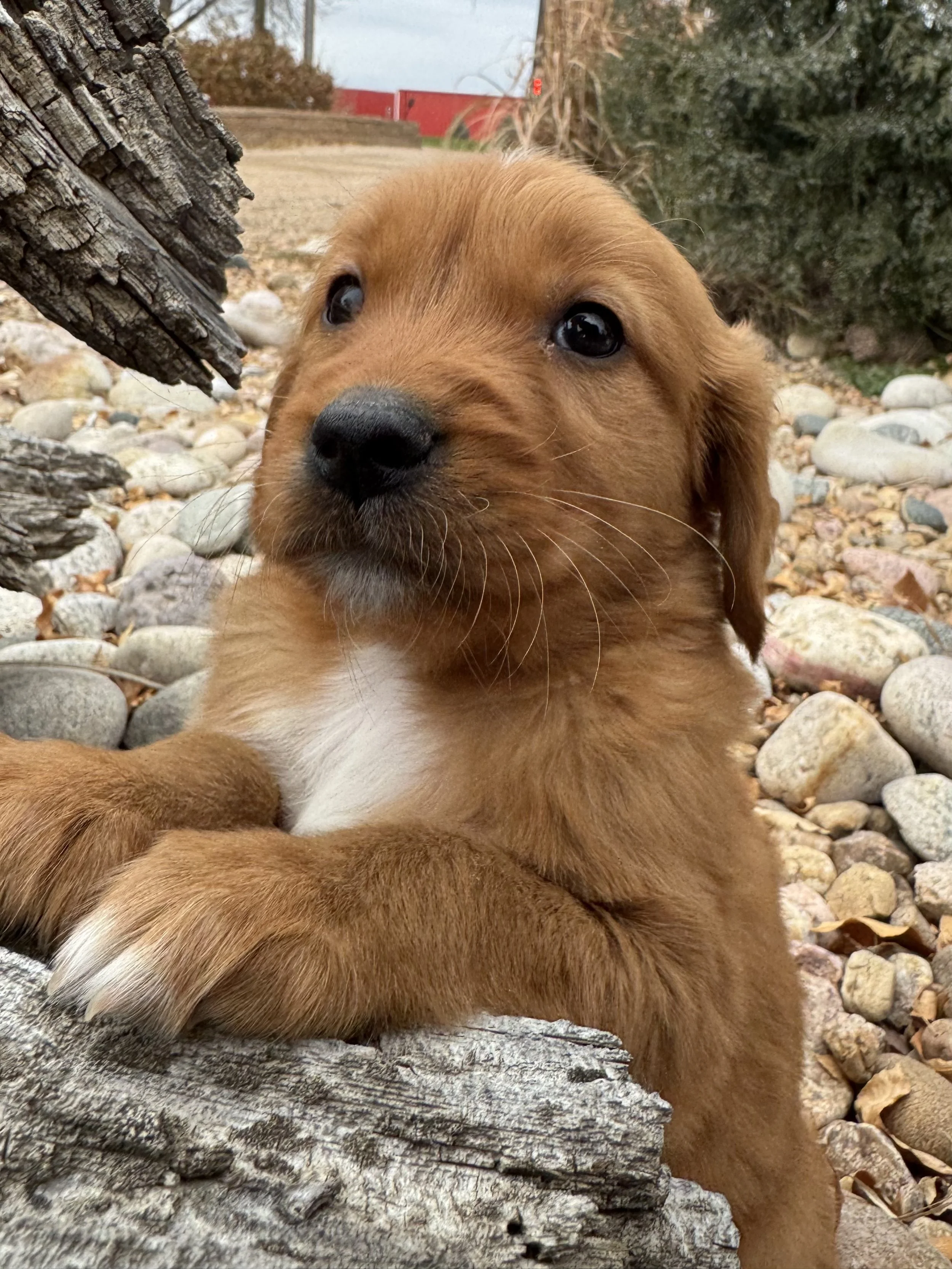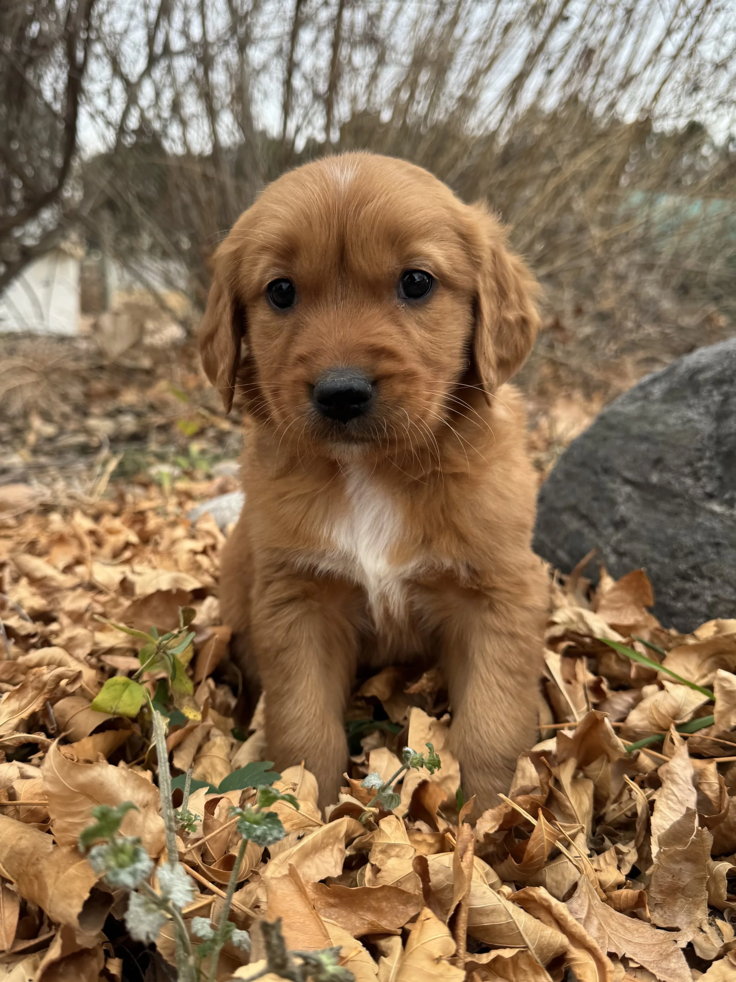Male 7952 is as photogenic as they get! He has an adorable white patch on his belly, which really makes him stand out! Male 7952 has great trust in his person and likes to stay near. He really loves nature, and wags his tail the whole time he plays and explores! He really liked the wing, and adores snuggle time, too!