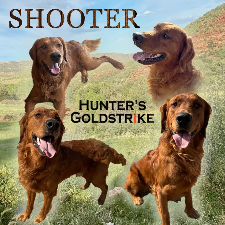 Our Boys Meet the loving males that reside with us! View fullsize Goldstrike’s Big Cowboy Hat View fullsize M&M’s Magnificent Maverick of Goldstrike View fullsize Shooter Strikes Gold at Goldstrike View fullsize Jagger Strikes Gold at Goldstrike Our Girls Here are the gorgeous females that live at our place! View fullsize Golden Girl Bettee White View fullsize H&K’s Golden Ivy (Ivee) View fullsize Laisee Daisee of Goldstrike View fullsize Goldstrike’s Chicken and Dumplin View fullsize Goldstrike’s Big Sky Ladybug View fullsize Butterscotch Candy Shop of Goldstrike View fullsize Ryan’s Zubee Dooby Doo View fullsize Olive You Now and Forever View fullsize Smiley Riley of Goldstrike To see dogs we have had in the past, click the button below Past Dogs of Hunter's Goldstrike